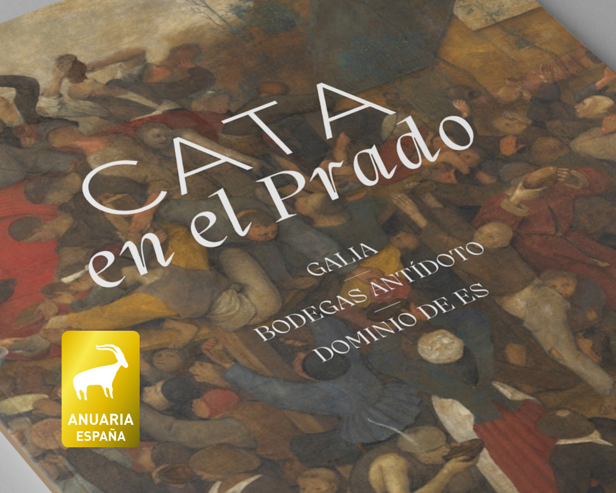 Las bodegas sorianas Bodegas Antídoto, Dominio de Es y Galia, organizaron el pasado 16 de septiembre un evento espectacular en el Museo del Prado. Un doble recorrido sensorial en el se visitaron en detalle obras relacionadas con el vino y otras que no lo están directamente, pero que hay que ver de forma inexcusable. Después en la Sala de las Musas, una cata de 8 grandes vinos sorianos. Para ello diseñamos las invitaciones, el cuaderno de cata y los manteles. Como imagen protagonista elegimos la pintura «El vino de la fiesta de San Martín» de Bruegel el Viejo y que formaba parte de la visita, todo un lujo.